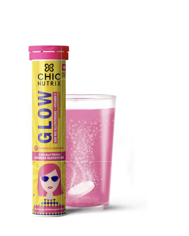 فوار – جلوتاثيون ( ياباني ) وفيتامين سي، مضادات أكسدة لبشرة صافية ومتألقة. خالية من السكر، بنكهة الليمون والفراولة. ٢٠ قرصًا (عبوة واحدة).